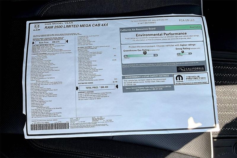 Bright White Clearcoat 2026 Ram 2500 Limited 4WD 8-Speed Automatic 6.7L I6 Prices do not include Tax, Title, License and Documentary Fee. Price does include: $1000 - 2026 National Bonus Cash . Exp. 11/03/2025