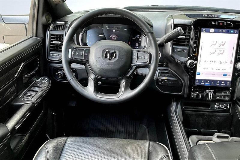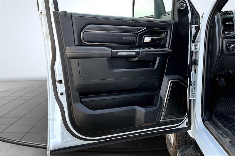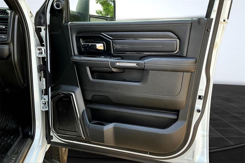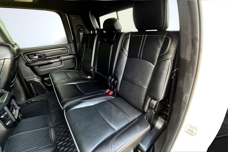 Bright White Mega Cab Limited, where luxury meets strength! Loaded with leather seating, advanced Uconnect system, premium audio, Mega Cab passenger room, heavy-duty towing, and upscale details.